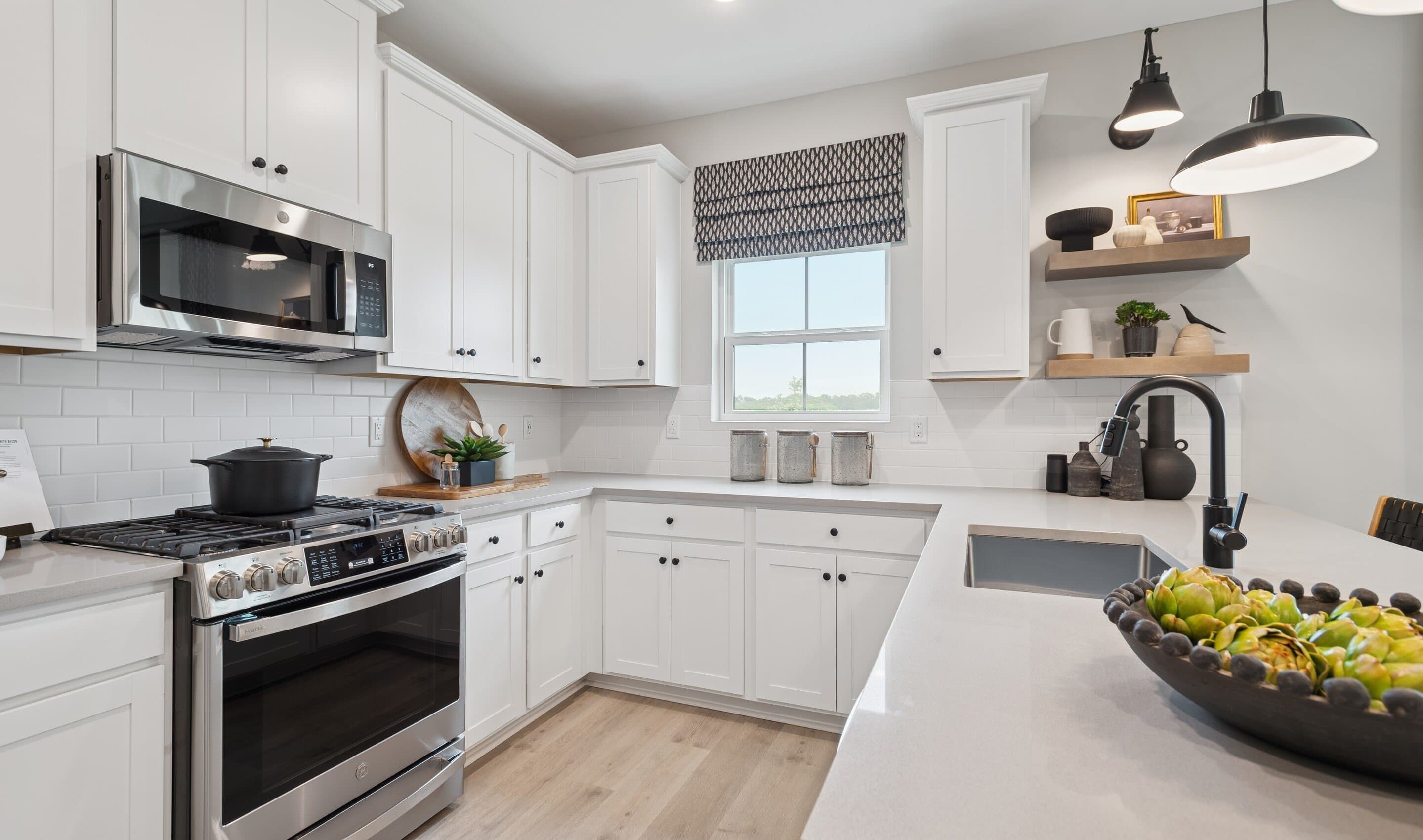 - Chef-worthy kitchen featuring Elkins White cabinetry & pendant lights